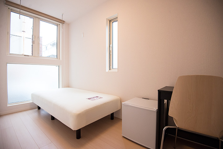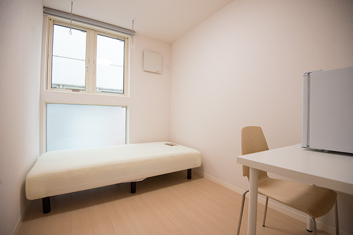 | 101 | 7.45 ㎡ | 58,000 円 | 13,000 円 | 30,000 円 | エアコン、机、椅子、ベッド、小型冷蔵庫、床下収納、無線インターネット | 満室 |